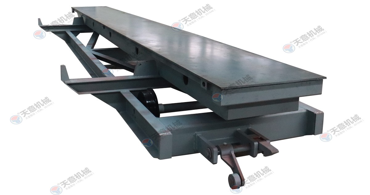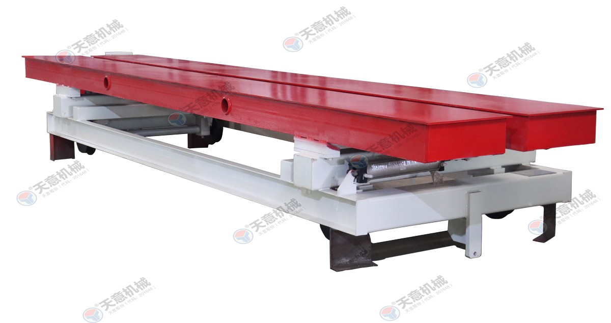 切割小車用于承載坯體為切割提供動力;切割工段空翻脫模機將??蚍D90°,放在第一輛切割小車支座上進行脫模,脫模后的??蚺c清理后的側模板進行合模,合膜后的空??虮坏踹\至模具回程軌道上進行涂油處理,等待下一...