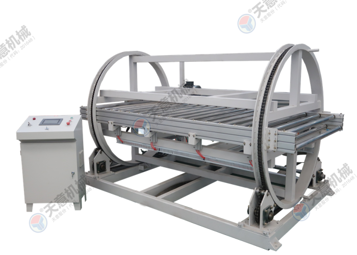 適用于平面門板、櫥柜側(cè)板、硅酸蓋板、玻鎂板、水泥纖維板等板式工件,配套連線作業(yè)時進行180°自動翻面1.翻轉(zhuǎn)電機1.5KW(帶抱閘),輸送電機0.75KW。2.翻轉(zhuǎn)傳動鏈條采用16A鏈條,承載能力高,動載荷大。3.采用獨立電箱控制,操作控制簡單方便4.設(shè)備兩側(cè)具有鋼絲網(wǎng)保護,提高設(shè)備安全性能